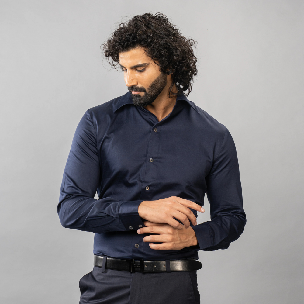With a lustrous satin finish and the iconic Hollywood collar, The Hollywood Royale is enriched by natural mother‑of‑pearl buttons — capturing the charm of classic cinema in a modern silhouette.
